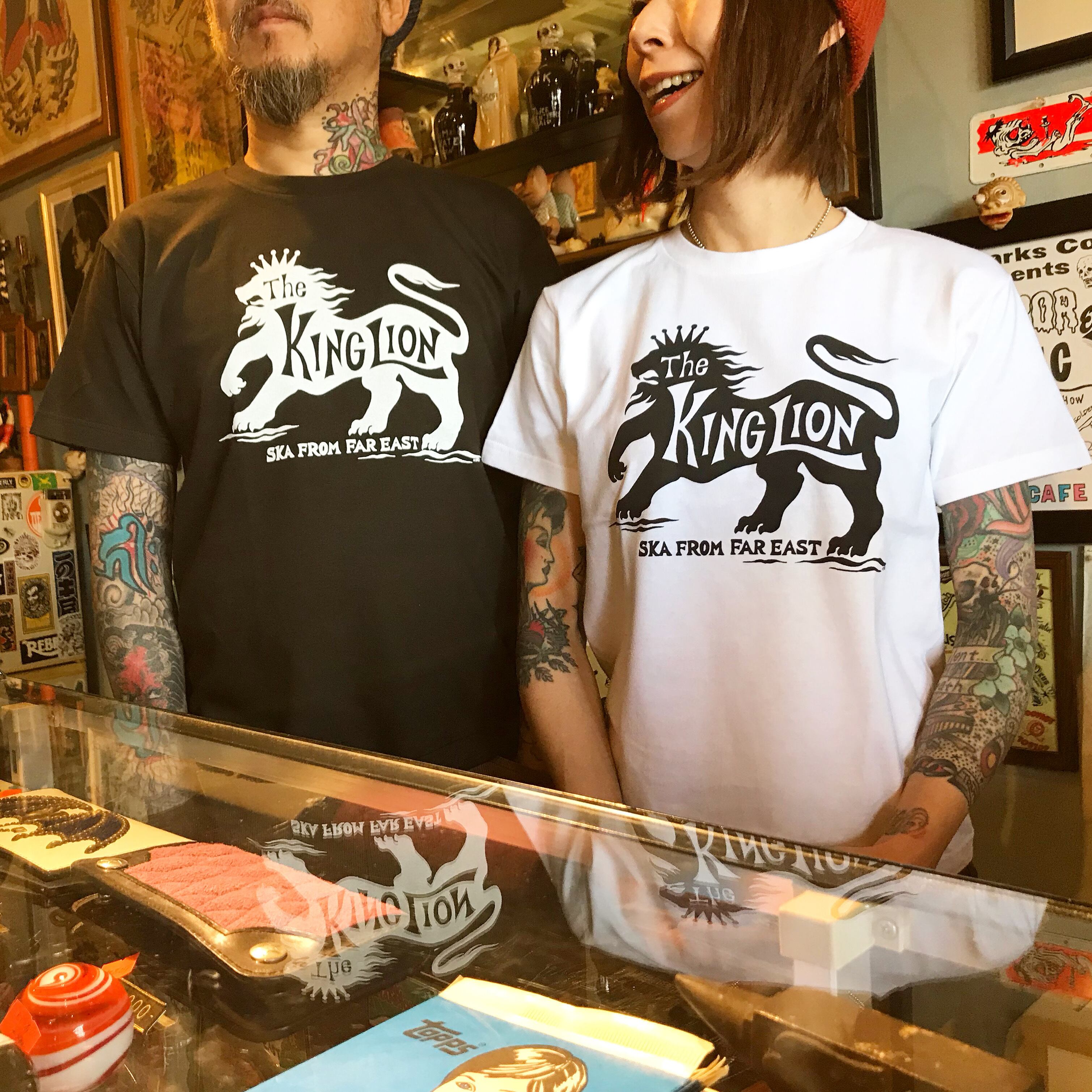 The KING LION 20周年記念Tシャツ(ブラック) 公式通販特典:ステッカー(非売品) ------------- 素材:綿100% ボディカラー:スモークブラック×ホワイト Design:Hiroyuki(COTTON PICKIN)